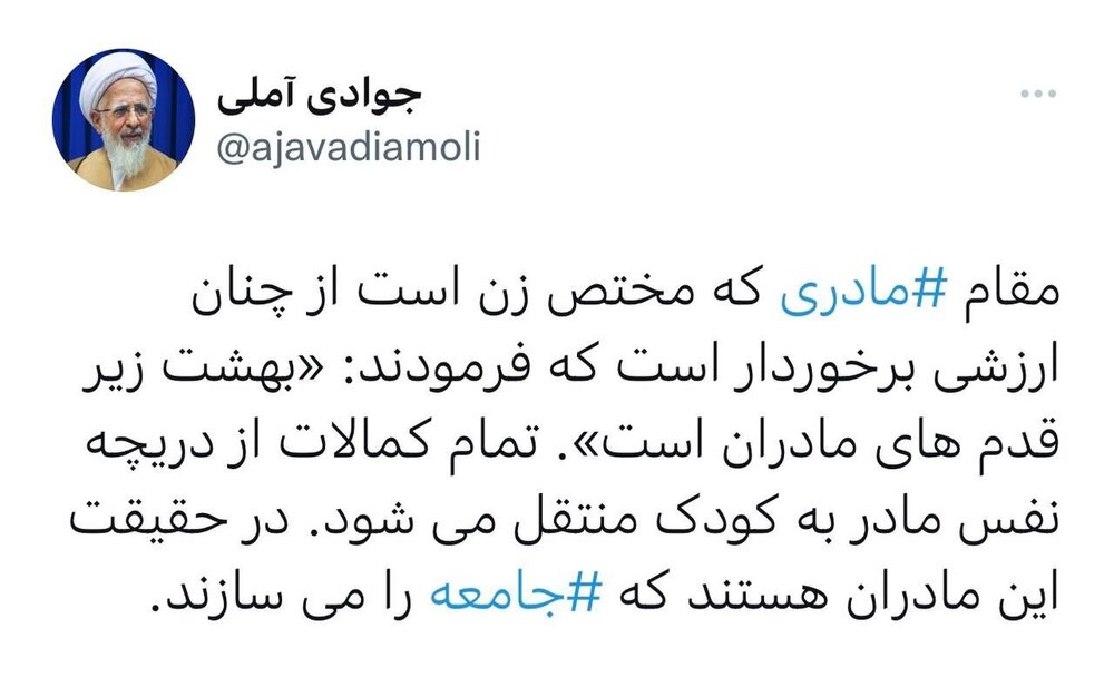آیتالله جوادی آملی ویژه «مادران»، توییت زد