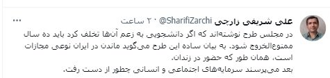 استاد دانشگاه شریف: طرح مجلس برای «ممنوع الخروجی» دانشجویان، میگوید ماندن در ایران، نوعی مجازات است