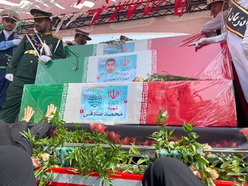 پیکر مطهر فرماندهان شهید و دانشمندان هستهای کشور ودیگر شهدای جنگ تحمیلی امروز شنبه7 تیر 1404 با حضور شخصیتهای سیاسی و نظامی و مردم شهید پرور ایران ازمقابل دانشگاه تهران به سمت میدان آزادی تشییع شدند