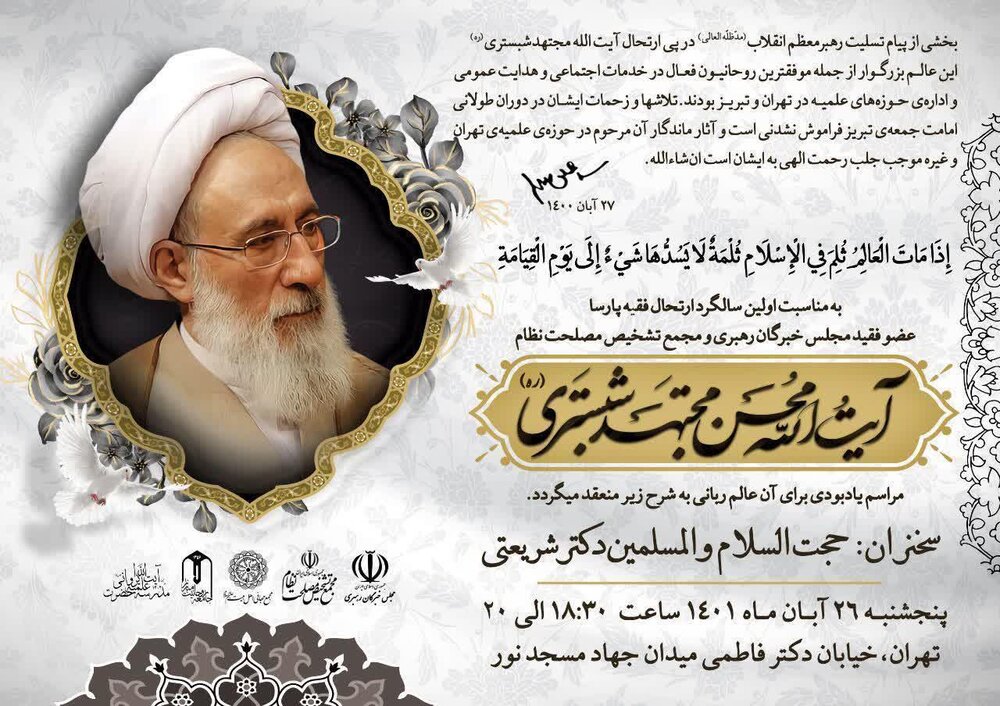 امروز پنج شنبه، برگزاری مراسم نخستین سالگرد درگذشت آیت الله مجتهد شبستری