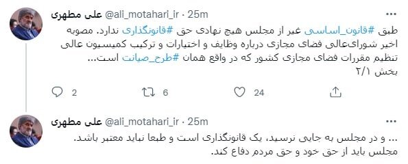 علی مطهری، نایب رئیس مجلس دهم نوشت: