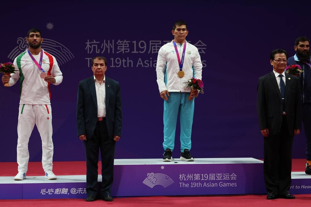 دکتر افتخاری از ایران مدال وزن 87 کیلوگرم کشتی فرنگی بازیهای آسیایی هانگژو 2022 را اهدا کرد.