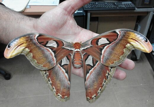 شاپرک اطلس بالهایی شبیه به سر مار دارد و با آنها شکارچیان را از خودش دور میکند.