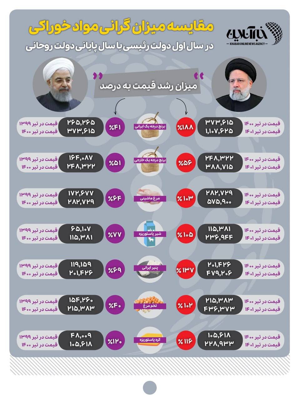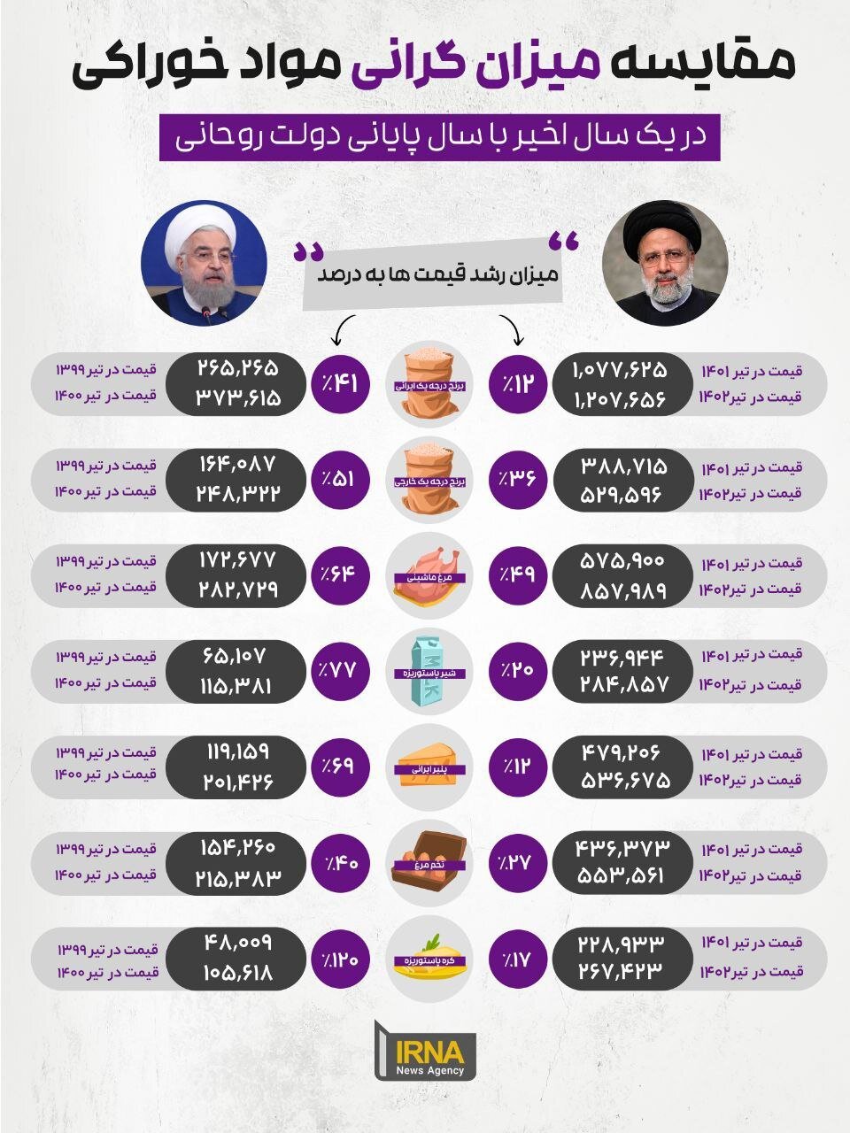 به گزارش خبرگزاری خبرآنلاین، ایرنا، خبرگزاری رسمی دولت در حالی نسبت به تنظیم اینفوگرافیک برای موفق نشان دادن دولت رییسی در مهار تورم و شکست دولت روحانی در همین حوزه اقدام کرده است که حتی تطابق اعداد را رعایت نکرده است.
