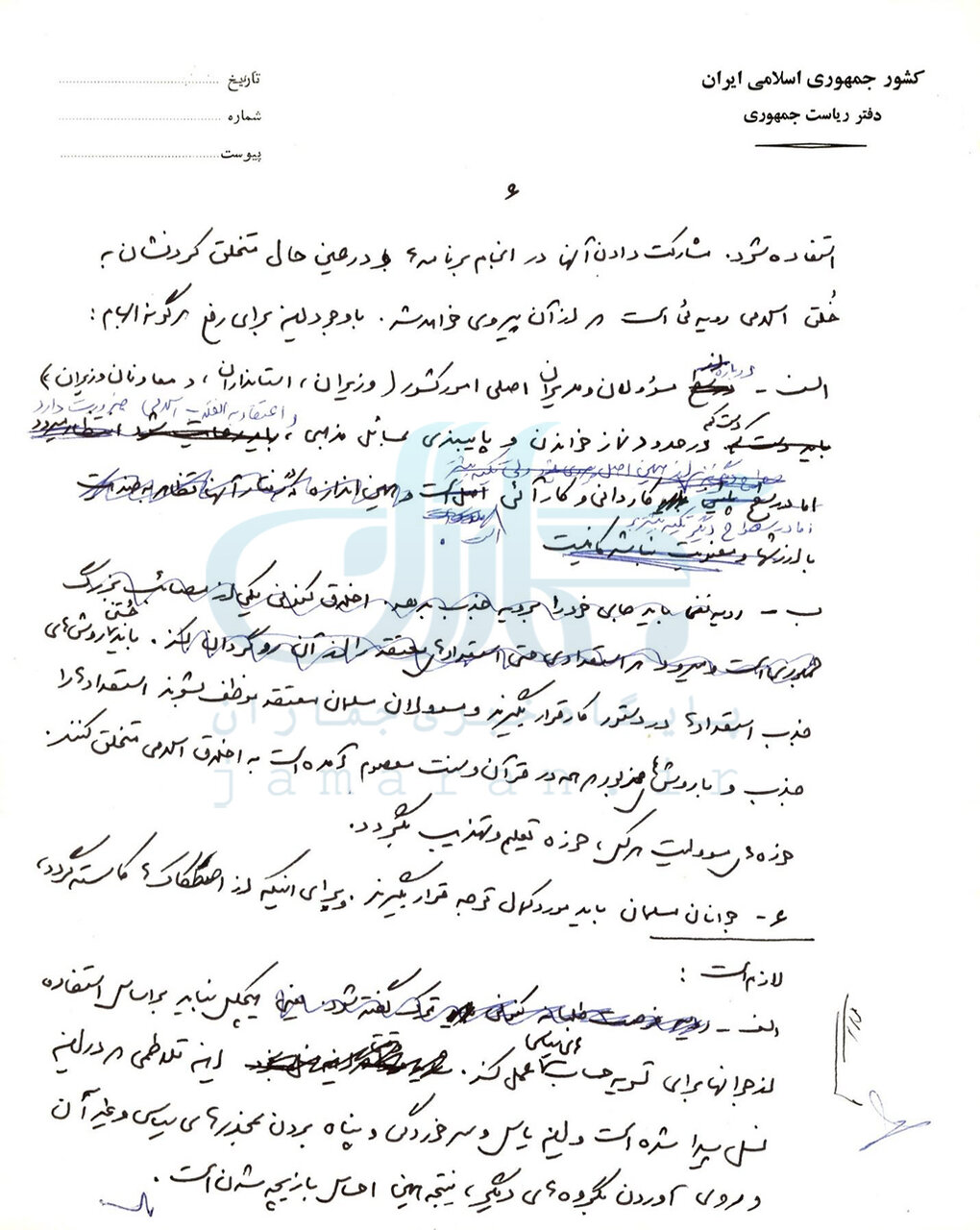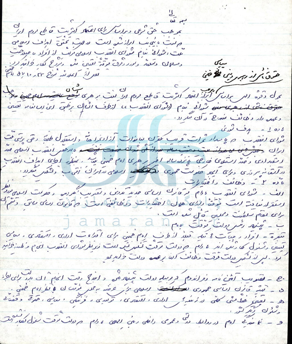 توضیحات مربوط به اصلاحات امام خمینی در متن پیشنهادی: