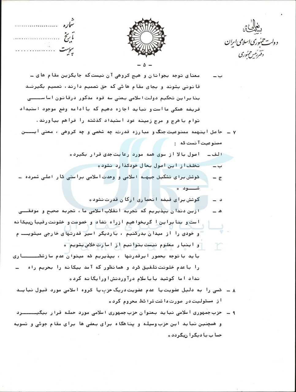 5 - پاسخ امام خمینی به پیام تلفنی آقای منتظری درباره عضویت ایشان در شورای انقلاب