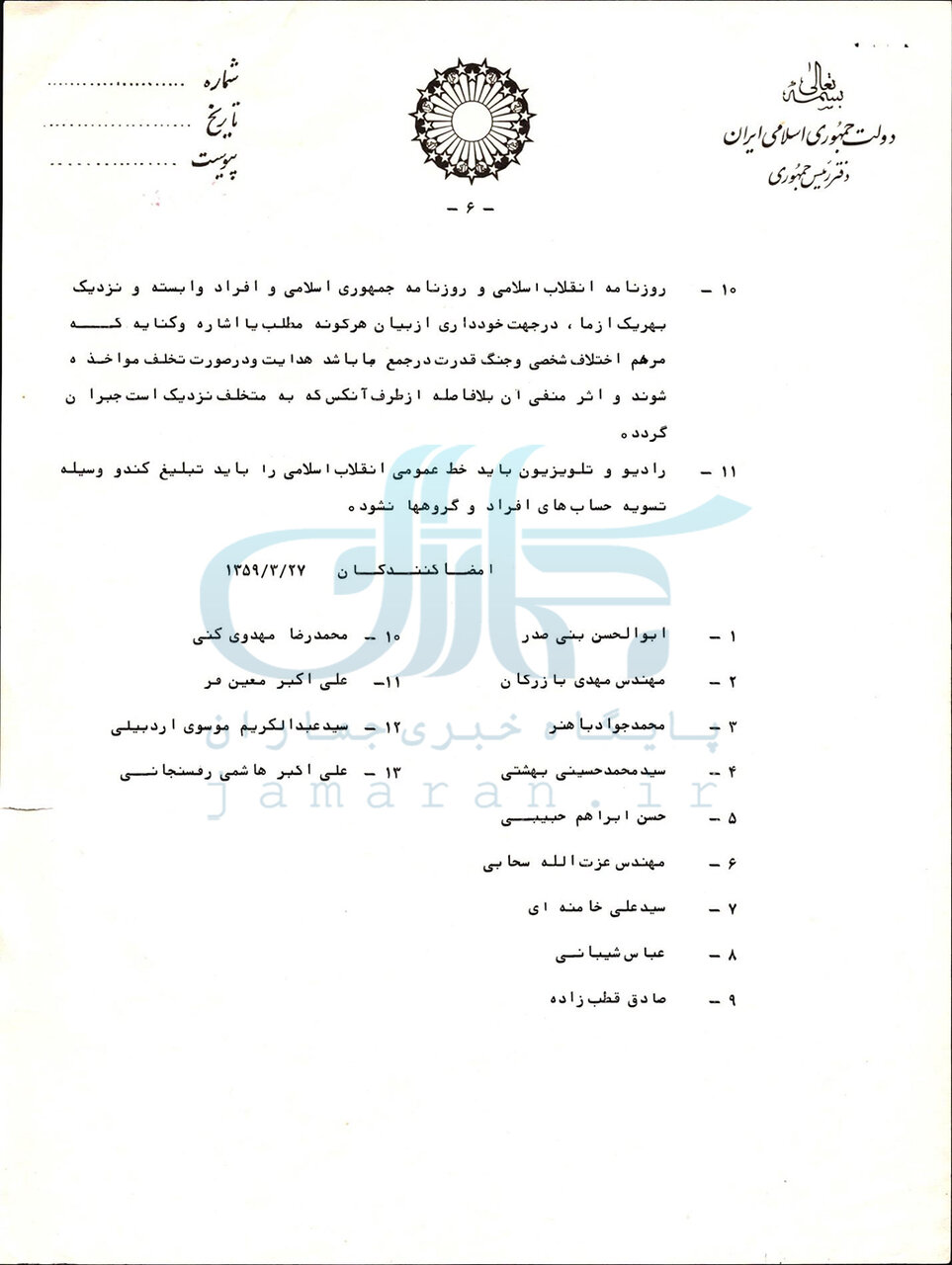 4 - میثاق نامه اعضای شورای انقلاب در خرداد سال 59