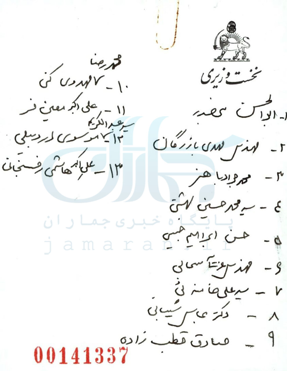 سند سوم: یادداشت شهید مطهری در معرفی 12 نفر افراد پیشنهادی برای عضویت در دولت موقت انقلاب