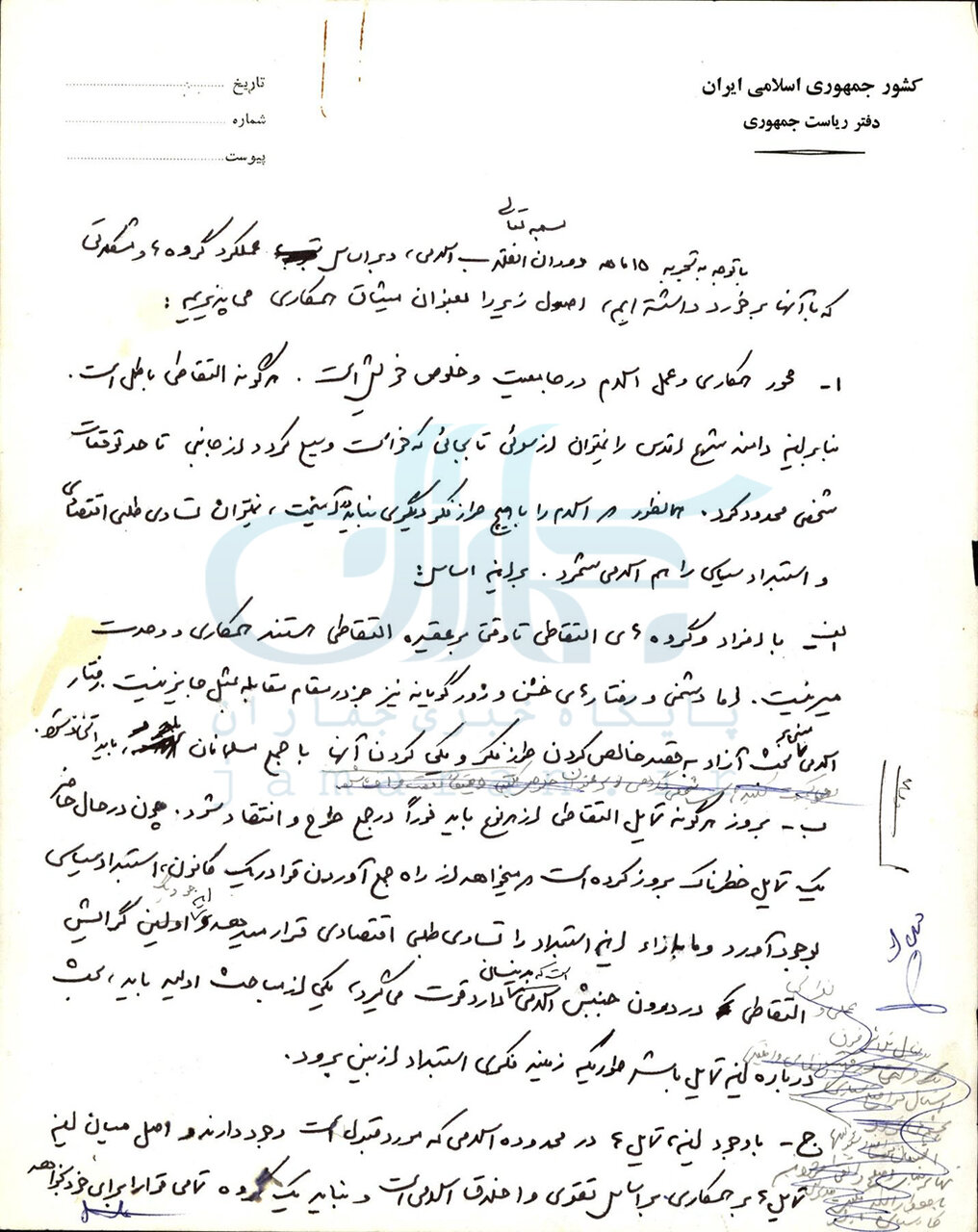 در حقیقت نامه زیر که بعنوان سندی مهم از اسناد مربوط به شورای انقلاب اسلامی برای نخستین بار منتشر می شود، نتیجه اقدامات انجام یافته در پاسخ به نامه فوق می باشد: