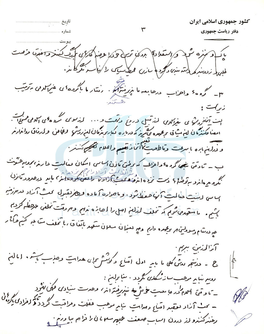 سه نکته درخور توجه با استفاده از متن سند فوق: