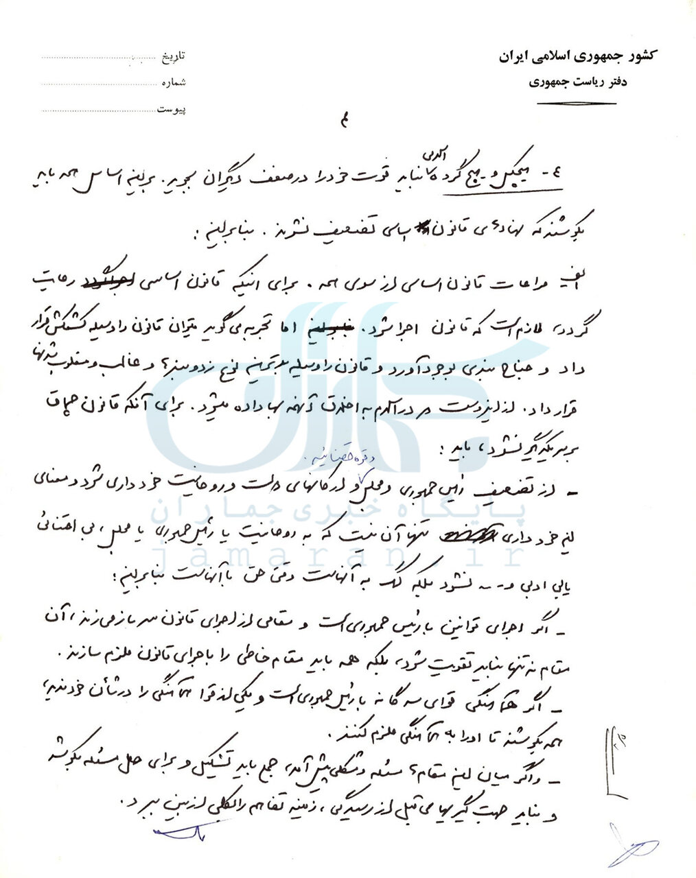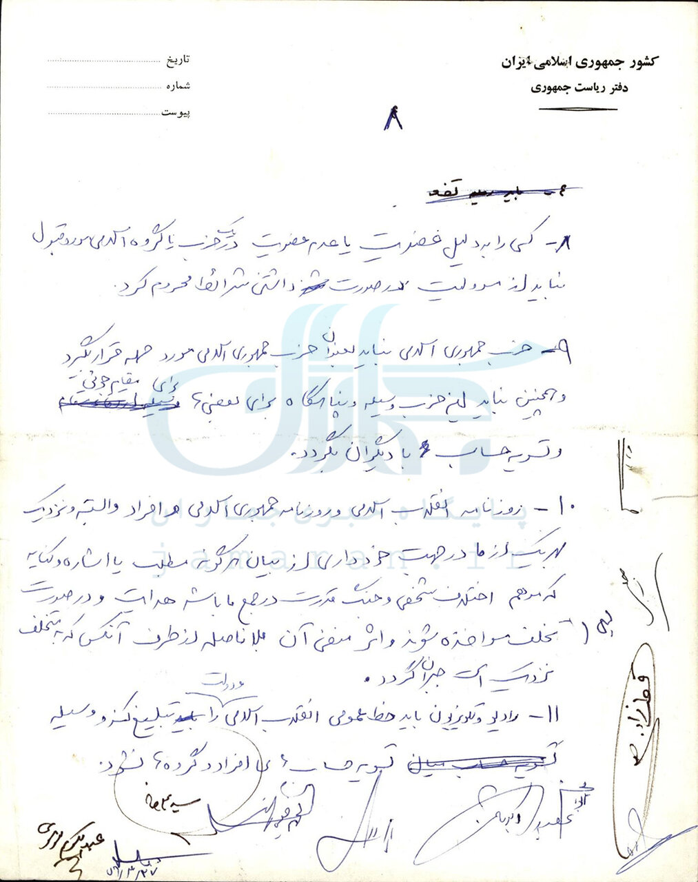 تصویر دستخط میثاقنامه به خط آقای ابوالحسن بنی صدر:
