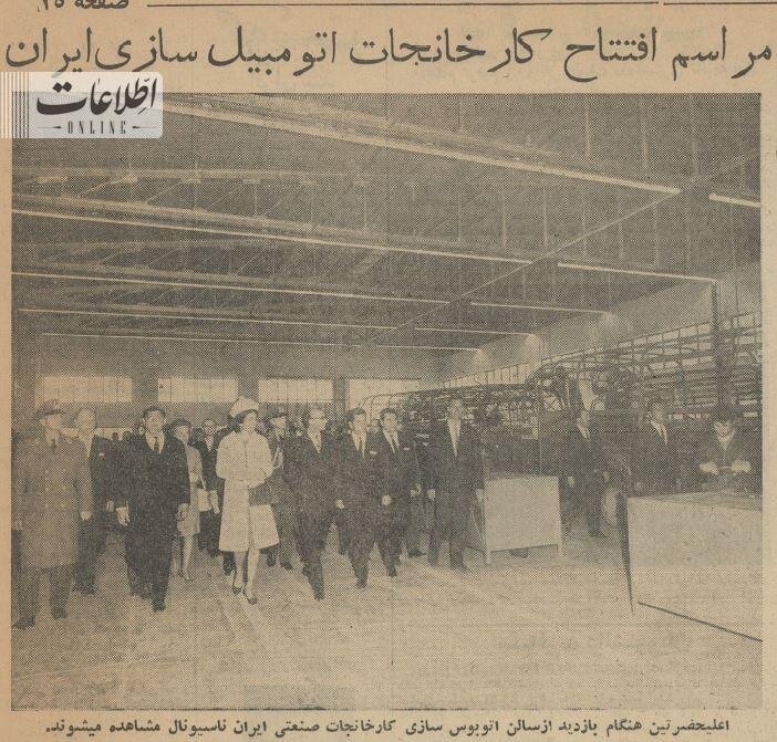 اطلاعات آنلاین تصاویری از مراسم افتتاح خط تولید اولین خودروی مونتاژ شده در ایران با حضور فرح پهلوی و محمدرضا پهلوی را منتشر کرده است.