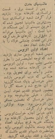 بنا بر روایت اطلاعات آنلاین، برادران خیامی، مدیران این واحد صنعتی در آن زمان اولین اتوبوس تولید شده در ایران ناسیونال را به خیریه فرح پهلوی اهداء کردند. روزنامه اطلاعات در اولین شماره خود در سال 1343 در 8 فروردین گزارش افتتاح کارخانجات ایران ناسیونال را منتشر کرد. بخشهایی از گزارش را بخوانید و عکسها را تماشا کنید.
