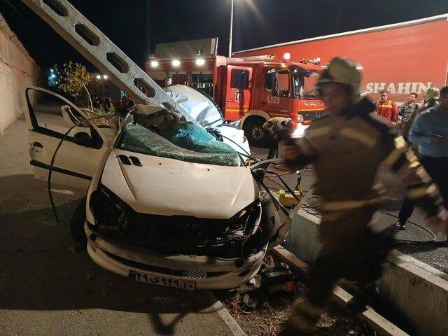 برخورد مرگبار پژو 206 با تیر برق / عکس