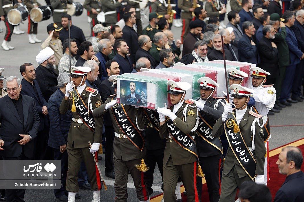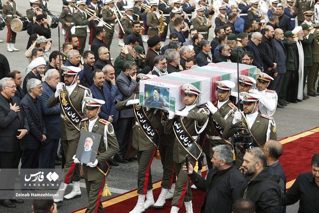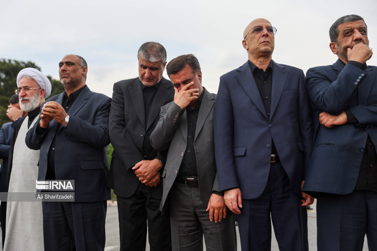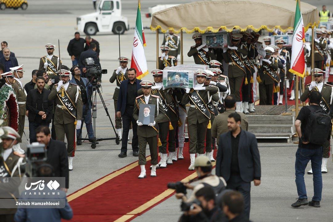 تصاویری از از استقبال مقامات لشکری و کشوری از پیکر رئیس جمهور و همراهانش مشاهده می کنید.