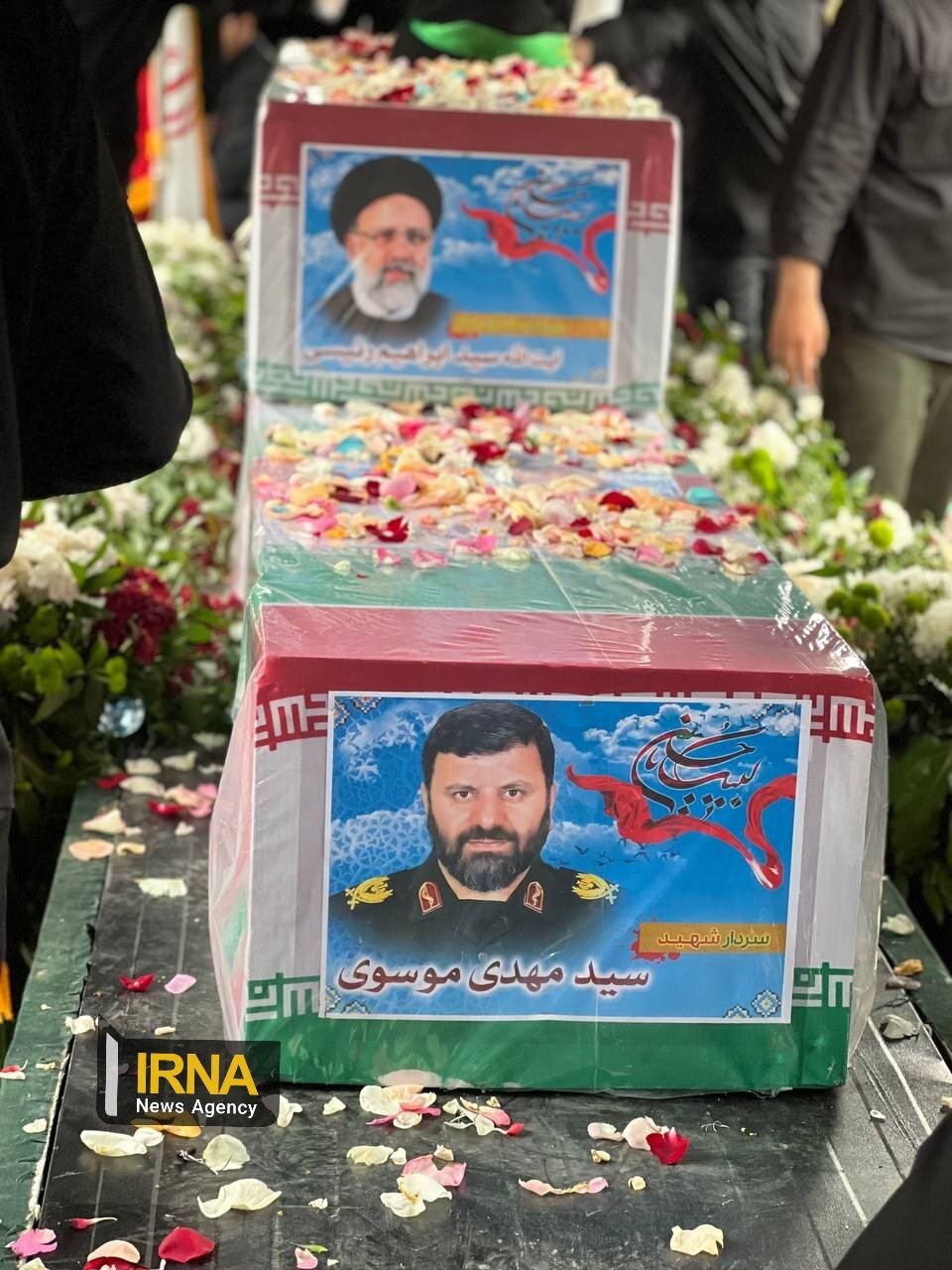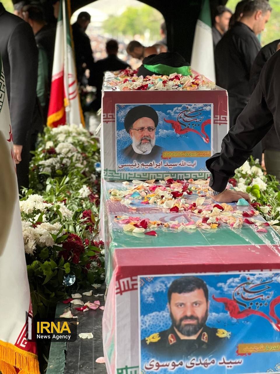 تصاویری از تابوت ابراهیم رئیسی و سرتیم حفاظت در مسیر حرم امام رضا (ع) / مراسم تشییع آغاز شد