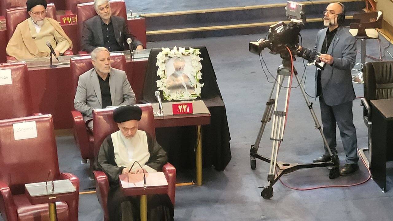 در این مراسم، صندلی روبهروی هیئترئیسه با تصویر ابراهیم رئیسی، رئیسجمهور کشورمان و عضو فقید مجلس خبرگان رهبری مزین شده بود.