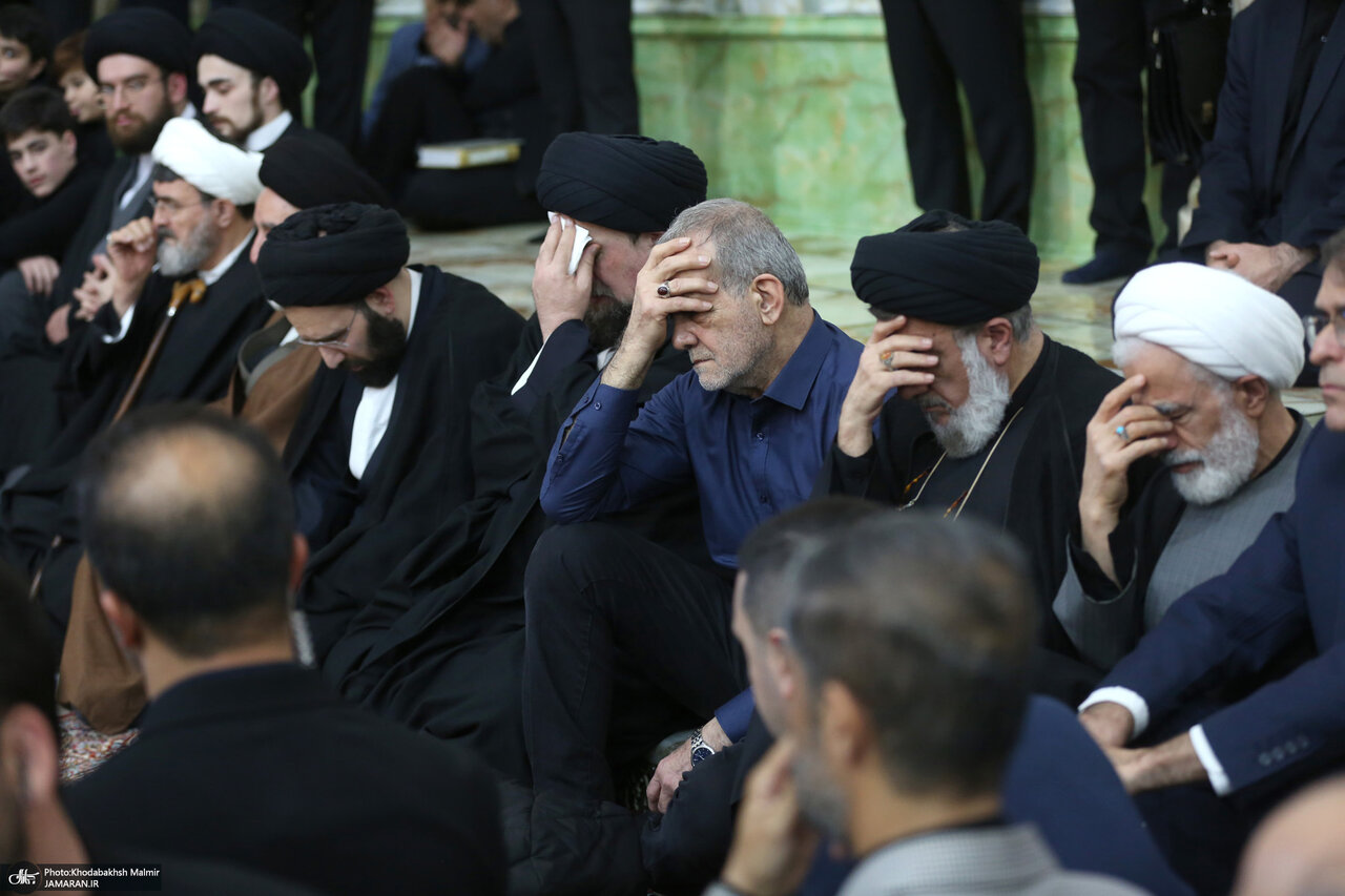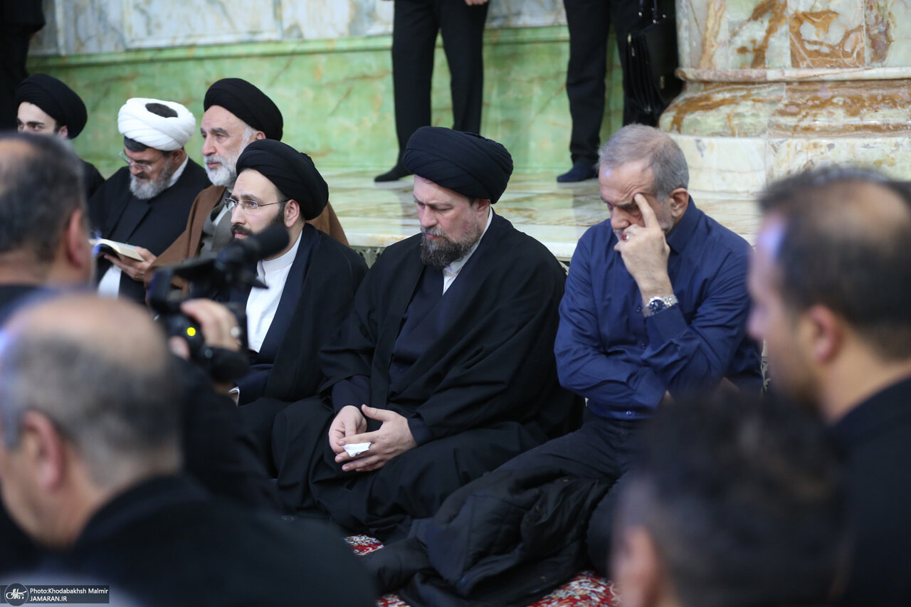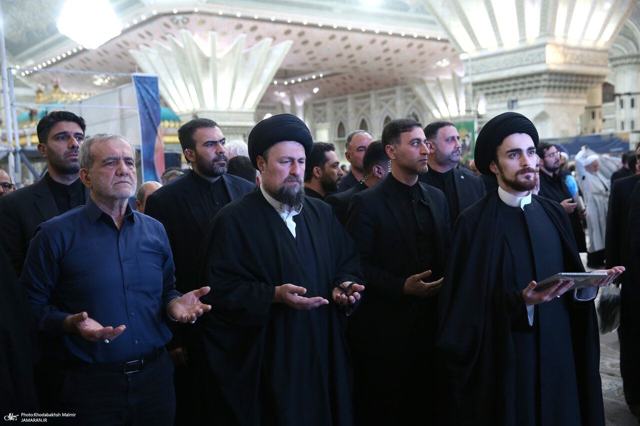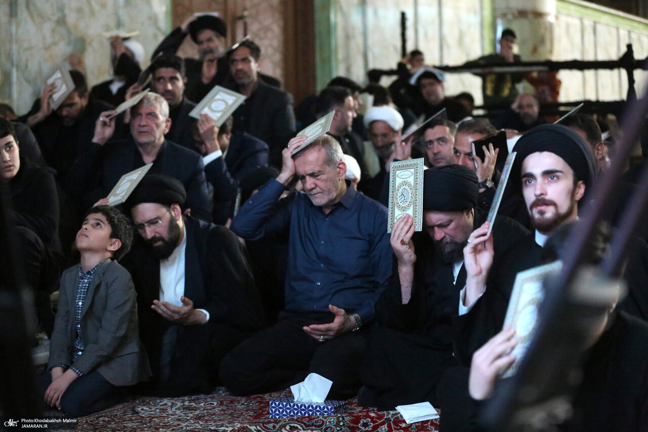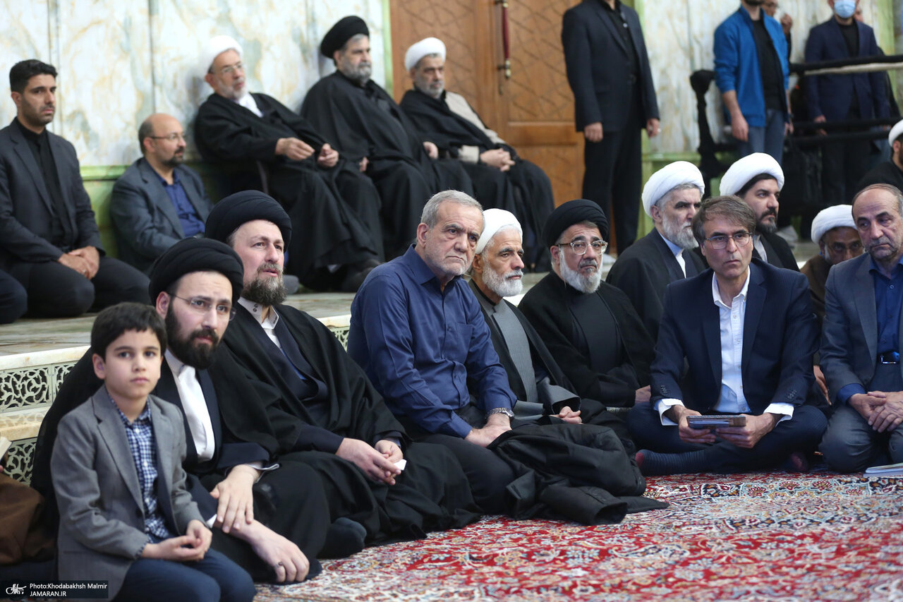 تصاویری از قرآن به سر گرفتن پزشکیان در کنار سیدحسن خمینی و پسرش