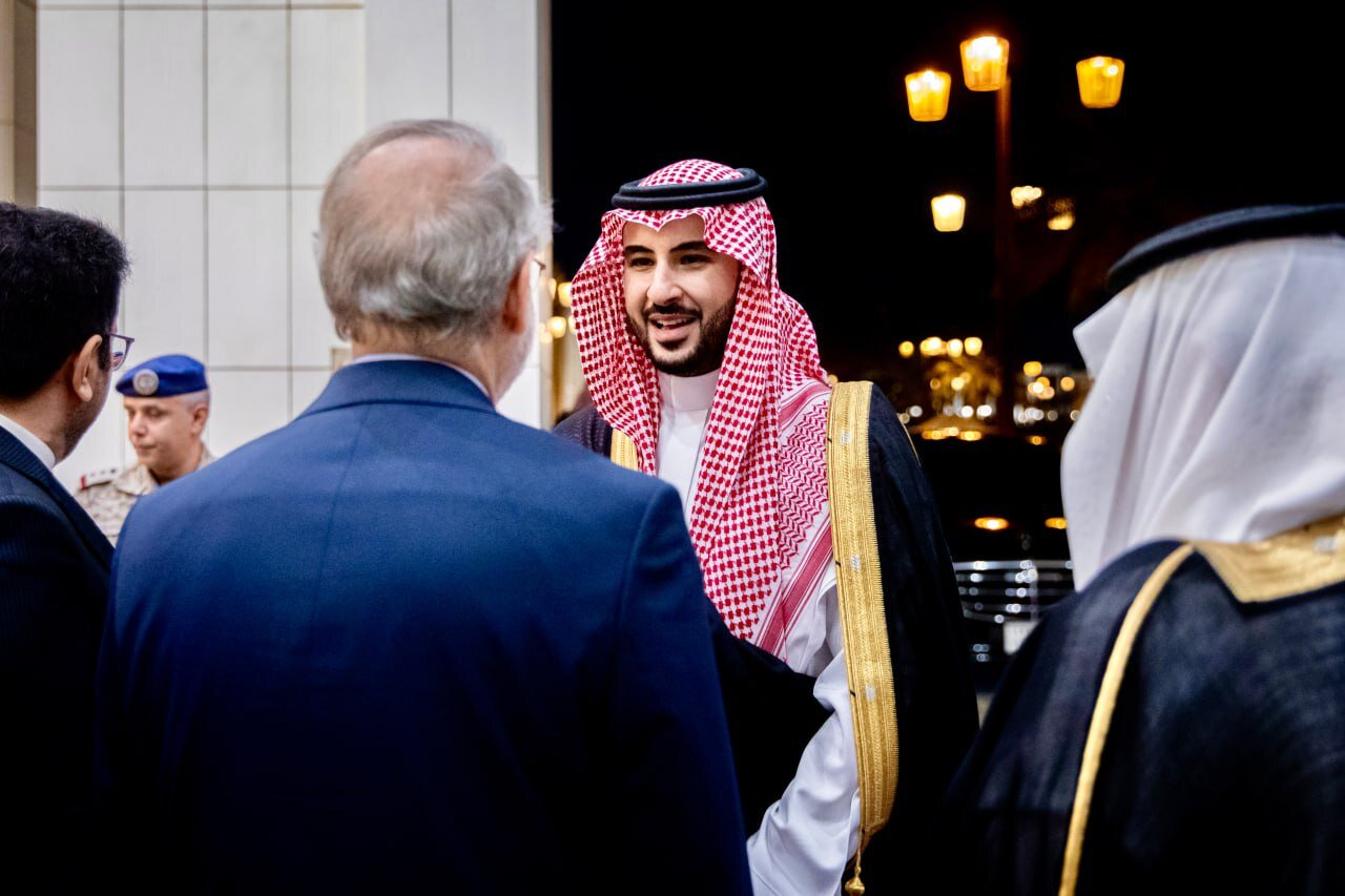 تصاویر تاریخی از دیدارهای لاریجانی با مقامات سعودی / سلام نظامی مامور سعودی، دست بر سینه خالد بن سلمان و تیپ خاص لاریجانی + عکس