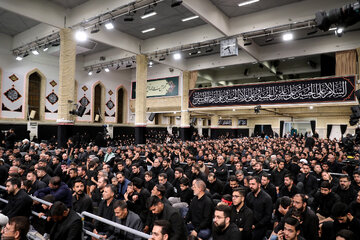 تصویری از حضور رهبر انقلاب در مراسم عزاداری شب عاشورا در حسینیه امام خمینی