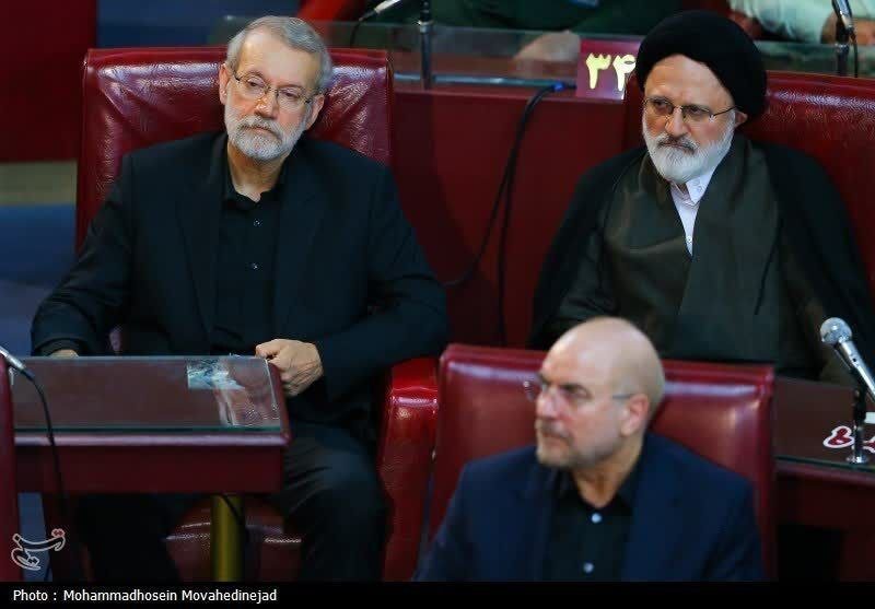 یکی از نکات این مراسم حضور علی لاریجانی در کنار سید علیاصغر حجازی، از اعضای ارشد دفتر رهبری در این مراسم است.
