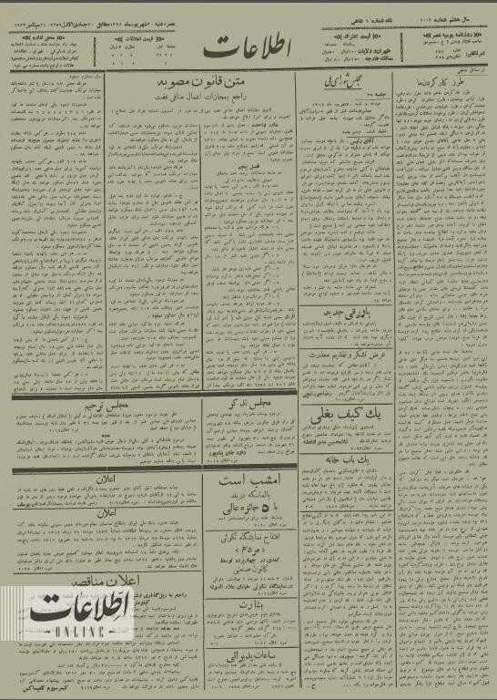 روزنامه اطلاعات 30 شهریور 1312 متن برخی مواد این قانون را همان روز منتشر کرد. مجلس شورای ملی به ریاست حسین دادگر این قانون را برای اجرا ابلاغ کرد. صفحه اول روزنامه اطلاعات امروز و برخی بندهای این قانون را بخوانید.