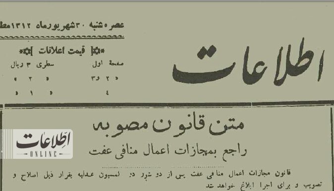 اطلاعات آنلاین نوشت: دولت محمد علی فروغی لایجه مجازاتهای اعمال منافی عفت را به مجلس شورای ملی فرستاد.