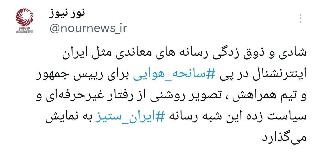 توئیت نورنیوز درباره سانحه برای بالگرد رئیسی و ذوق زدگی ایران اینترنشنال