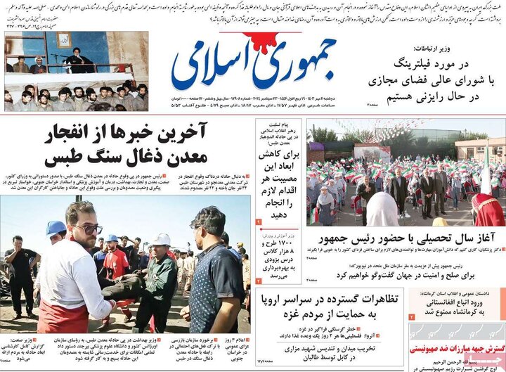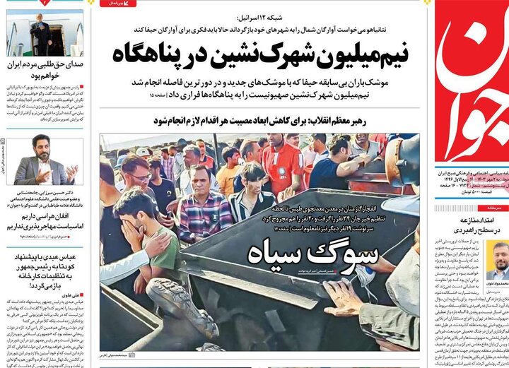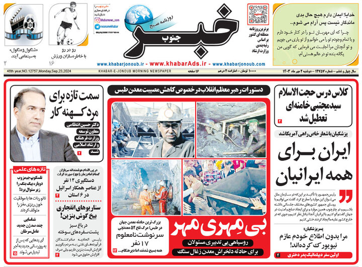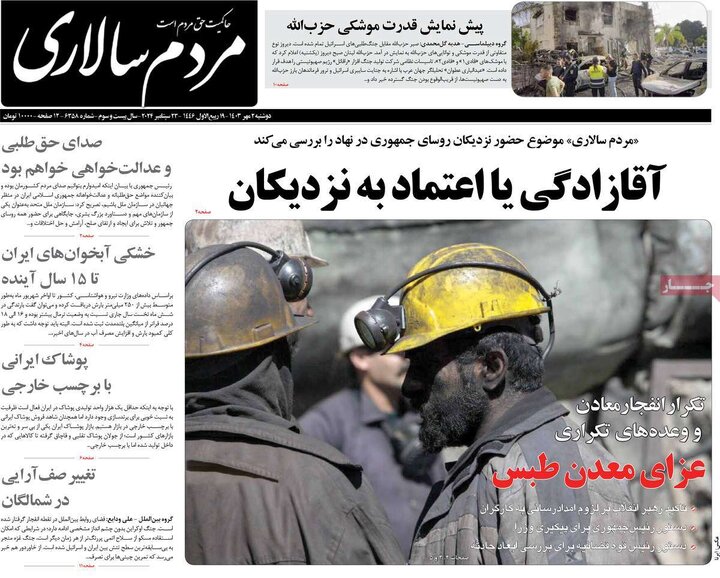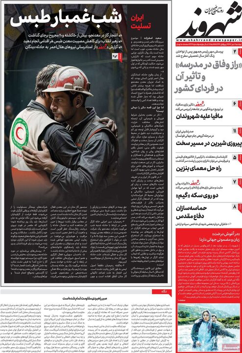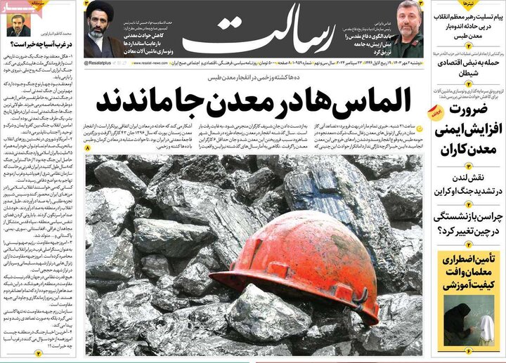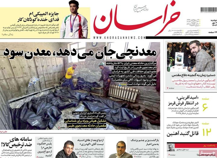 تیترهای صفحه اول روزنامههای دوشنبه 2 مهر، زیر آوار معدن طبس