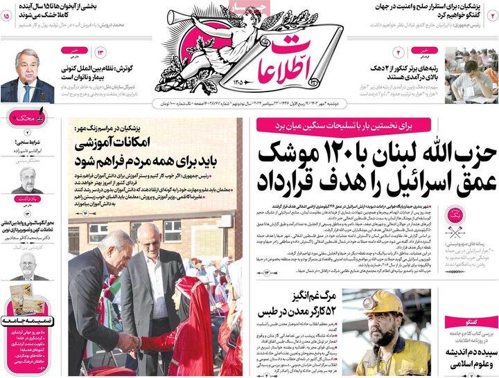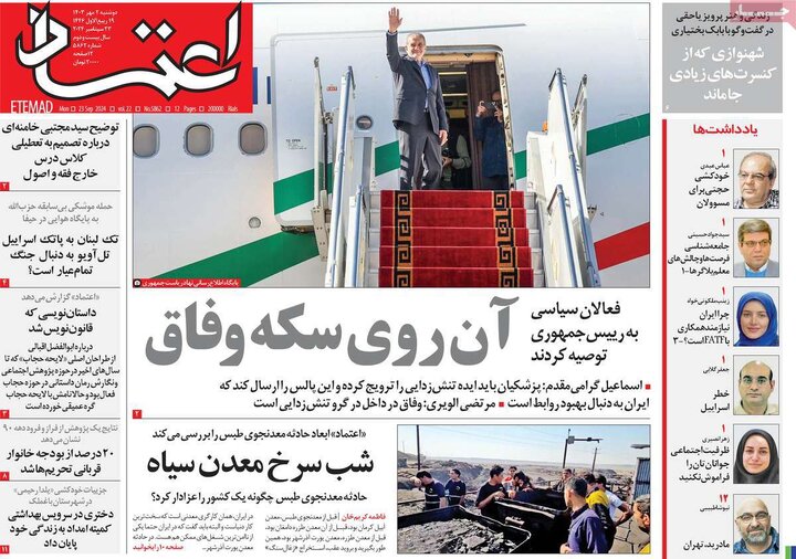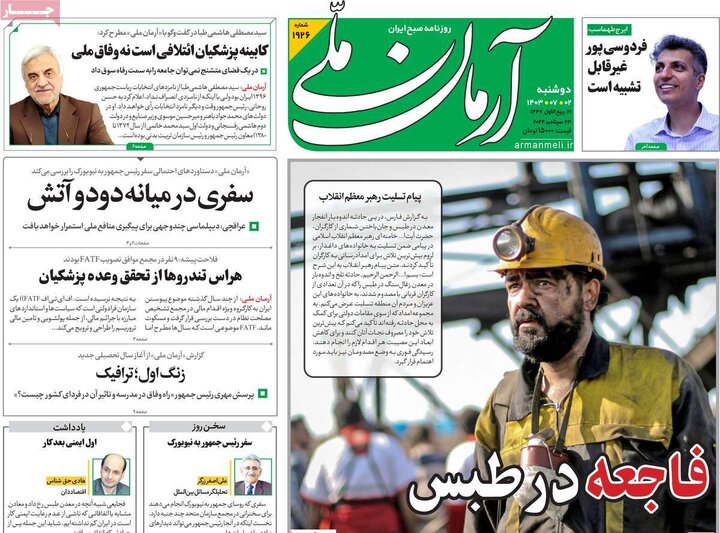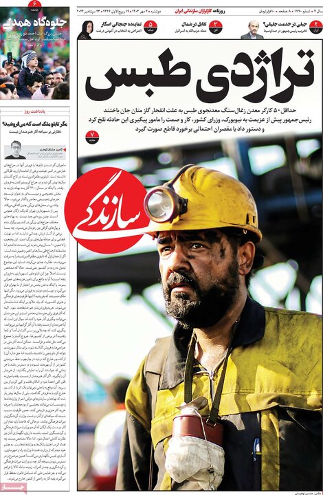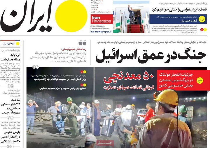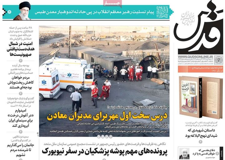 انفجار معدن طبس و تلفات50نفری، زلزله در بجنورد، ورود رئیس جمهور به نیویورک و... از تیترهای مطبوعات امروز است.