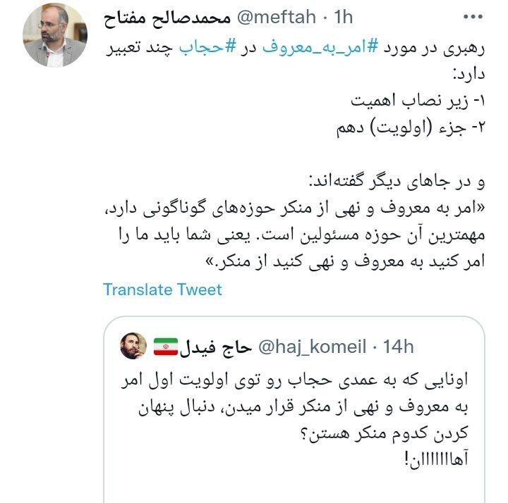 معاون سابق ستاد امربهمعروف و نهیازمنکر، نظر رهبری درباره رده حجاب در اولویت بندی امر به معروف ها را یادآور شد.