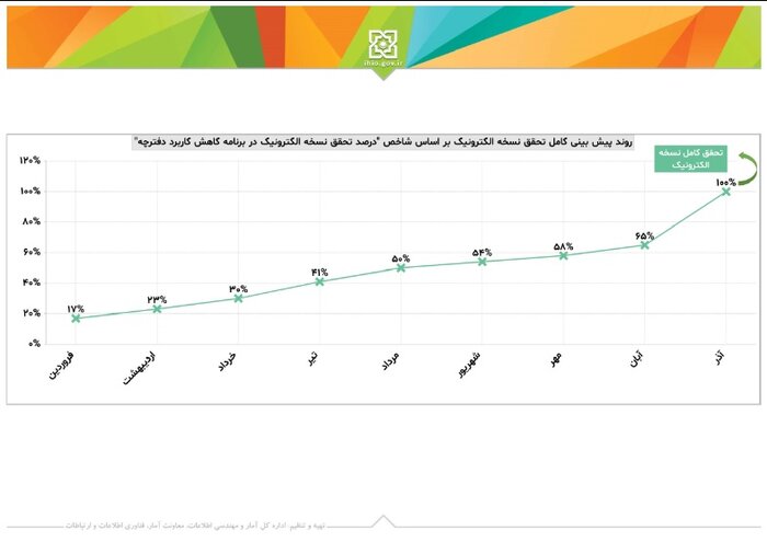 مقایسه درصد تحقق نسخه الکترونیک در آبان و آذر 1400 بر اساس آمارهای سازمان بیمه سلامتموضوع دیگر اینکه سازمان بیمه سلامت پیش بینی میکند که 80 درصد نسخه به صورت تمام الکترونیک تا پایان آذر ماه اجرایی شود و 20 درصد دیگر هم به صورت نیمه الکترونیک امکان تحقق دارد؛ تا بتوان بر اساس قانون، از اول دی ماه 1400 نسخههای غیرالکترونیک توسط سازمانهای بیمهگر پایه پذیرفته نشود.