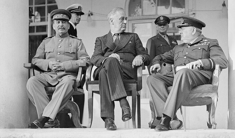 روزولت، استالین و چرچیل در جریان جنگ جهانی دوم در تهران گردهم آمدند که به کنفرانس تهران شهره شد این واقعه بدون اطلاع محمدرضا بود و حتی شاه پهلوی را میان خود راه ندادند!بالای 90% مردم آمریکا مخالف ورود به جنگ جهانی دوم بودند. اما همسر روزولت در خانه آزادی به دنبال آماده سازی اذهان برای ورود به جنگ بود. شخص روزولت نیز با وجود اعلام بیطرفی، اشد مساعی آمریکا را در پشتیبانی از نیروهای متفقین به کار بست. رئیس جمهور وقت آمریکا در یک مورد، فقط 50 ناوشکن به انگلیس تحویل داد.[