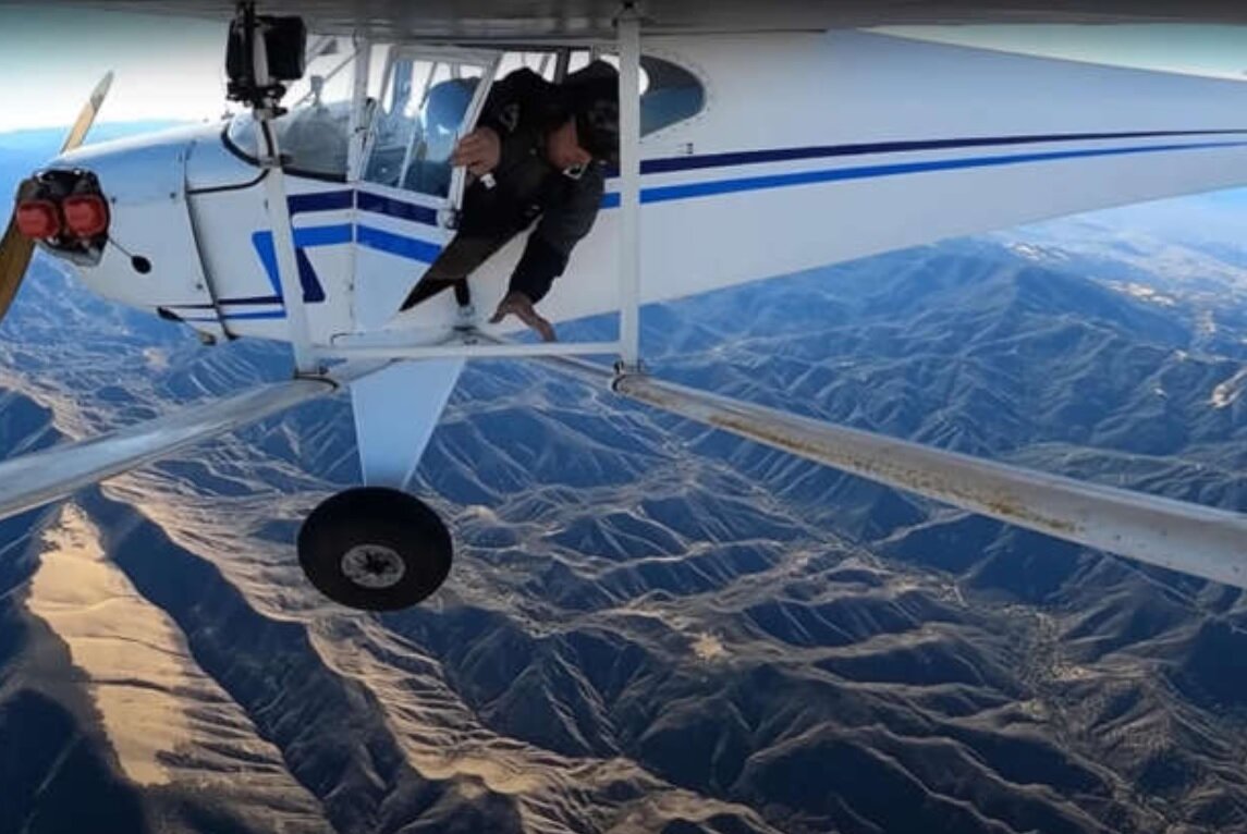 جیکوب با هواپیمای تکموتوره کوچک و مجهز به دوربین، از فرودگاهی در کالیفرنیا برخاست و پس از 35 دقیقه پرواز، با چتر نجات از هواپیما بیرون پرید و هواپیما را سرنگون کرد. تمام این اتفاق با استفاده از دوربینهای متصل به هواپیما، فیلمبرداری شدند.