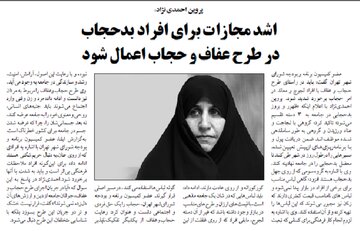 خواهر احمدینژاد: اشد مجازات برای افراد بدحجاب اعمال شود / گروهی از بدحجابان پول گرفتهاند تا معضل بدحجابی را نهادینه کنند