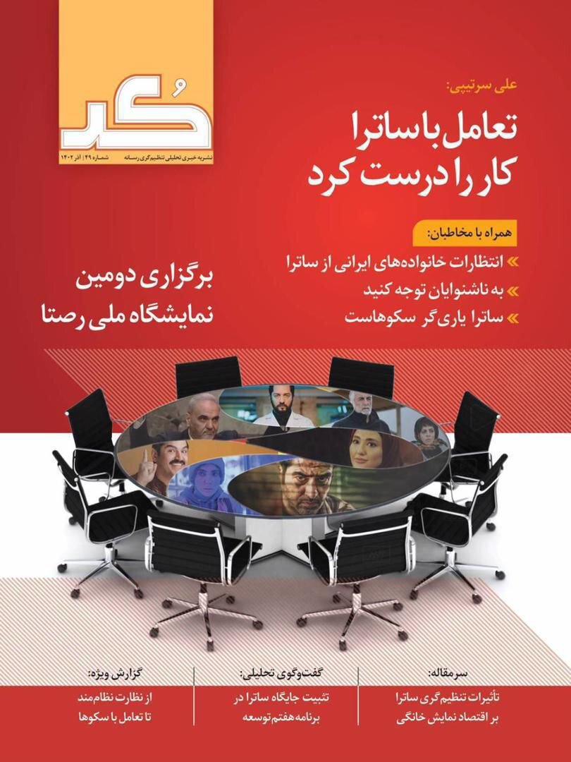 طبق این گزارش، در این شماره از نشریه کد، سرمقالهای از محمدحسن خلعتبری معاون تنظیم بازار و توسعه کسب و کار ساترا، گفتوگویی ویژه با علی سرتیپی تهیهکننده و مدیر سکوی «فیلمنت»، گزارشی از برگزاری دومین نمایشگاه ملی «رصتا»، گفتوگو با محمد حسامپور معاون پایش و نظارت ساترا، گزارشی ویژه درخصوص بررسی عملکرد ساترا در سال 1401، گفتوگو با محمدمهدی رحمتی مدیرعامل خبرگزاری مهر، یادداشتی از سعید مرادی مدیرعامل اتحادیه تولیدکنندگان فیلم و سریال ایران درباره عملکرد ساترا در تنظیمگری نمایش خانگی، گفتوگو با محسن قائمینسب قائممقام ساترا، گزارشی تحلیلی درمورد برنامهها و تعامل ساترا با سکوهای صوتوتصویر فراگیر و نمایش خانگی، گفتوگو با مسعود اطیابی کارگردان سینما و تلویزیون راجع به جایگاه ساترا در تنظیمگری و گفتوگو با احمد راستینه سخنگوی کمیسیون فرهنگی مجلس شورای اسلامی درخصوص تثبیت جایگاه ساترا در برنامه هفتم توسعه را میخوانید.