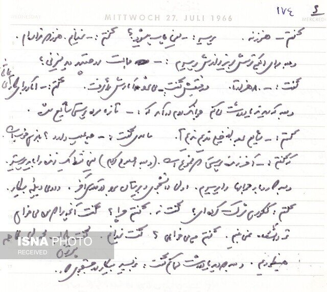 او همچنین درباره اسناد و مدارک منتشر نشدهای که در رد این ادعا وجود دارد، نیز گفت: همانطور که اشاره کردم، علاوه بر مقاله منتشرشدهای که توضیحش داده شد، نوشتههای دیگری هم از آلاحمد وجود دارند که متأسفانه هنوز امکان انتشارشان فراهم نشده و ناچار به دست کسی نرسیدهاند. حالا بنده بخشهایی از این نوشتهها را برایتان میخوانم و بعد هم تصویر دستنوشت خود آلاحمد را در اختیارتان میگذارم تا برای رفع هرگونه شک و شبهه آنها را منتشر کنید و در عین حال که یک الگوی حرفهای از طرز کار یک پیشکسوت در زمینه گزارش نویسی است، برای جوانانی که وارد کار مطبوعاتی شدهاند و گزارش خبری تهیه میکنند، مفید است.