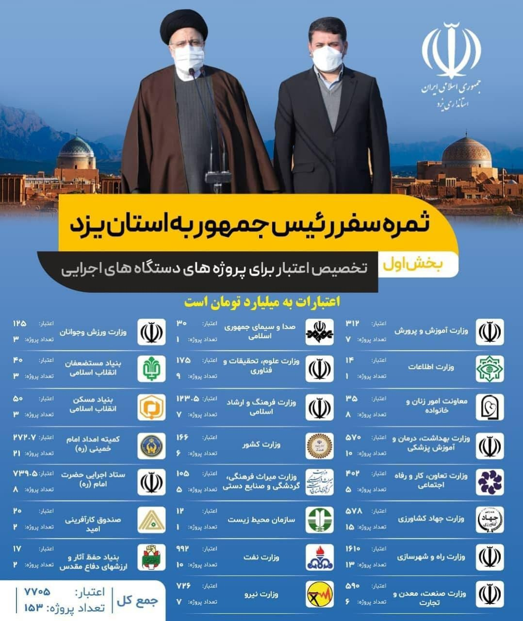 در قالب این سفر یکروزه برخی وزیران به عنوان نماینده رییس جمهور راهی شهرستانها و مناطق مختلف استان شدند، به طوری که وزیر میراث فرهنگی، گردشگری و صنایع دستی در شهرستان های یزد و اشکذر، وزیر اقتصادی و امور دارایی در شهرستان بافق و بهاباد، وزیر جهاد کشاورزی در شهرستان های تفت، ابرکوه و مهریز، وزیر بهداشت، درمان و آموزش پزشکی و معاون وزیر راه و شهرسازی در شهرستان های خاتم و مروست و وزیر ورزش و جوانان در اردکان حضور پیدا کردند.