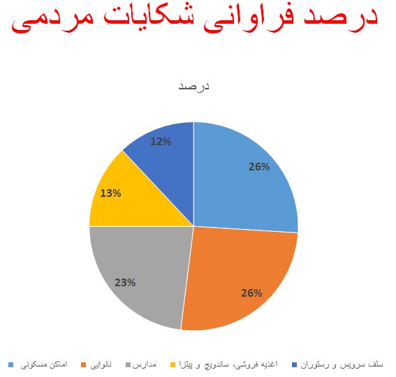همچنین از کل شکایات، 26 درصد مربوط به اماکن مسکونی، 26 درصد مربوط به نانواییها، 23 درصد مربوط به مدارس، 13 درصد مربوط به اغذیه فروشیها، ساندویچ و پیتزا فروشیها و 12 درصد مربوط به سلف سرویس و رستورانها بوده است.