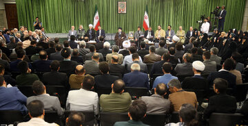 در ابتدای این دیدار نماز مغرب و عشاء به امامت رهبر انقلاب اسلامی اقامه شد.