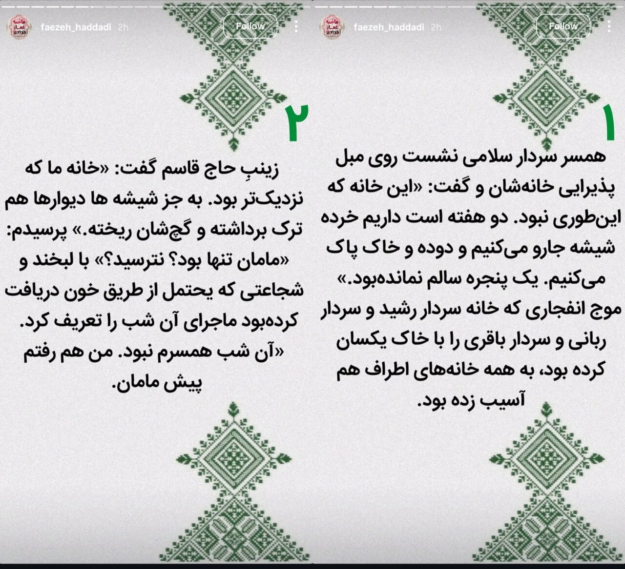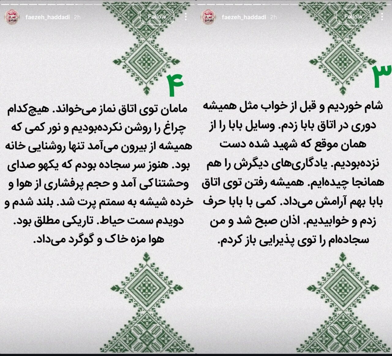 این روایت در اینستاگرام فائضه غفارحدادی، نویسنده معروف منتشر شده است.