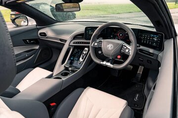 تولید خودروی مدرن با استفاده از مواد اولیه بازیافتی و گاه بیکیفیت همراه شده است؛ خوشبختانه امجی در این زمینه راهی نسبتا متفاوت را رفته و حس کیفیت مناسب را بهخوبی به مشتریانش القا میکند. کابین با چرم، بخشهای پلاستیکی درخشان و نمایشگرهای بزرگ پوشیده شده که حد تعادل میان تکنولوژی ارزان و کیفیت بالا را حفظ کرده است. تنها مشکل کابین این خودرو، ارتفاع نامناسب راننده محسوب میشود که برای افراد بلندقامت، نکتهای منفی به شمار میرود. دلیل این مسئله هم محل قرارگیری بسته باتری 77 کیلووات ساعتی سایبرستر به شمار میرود.