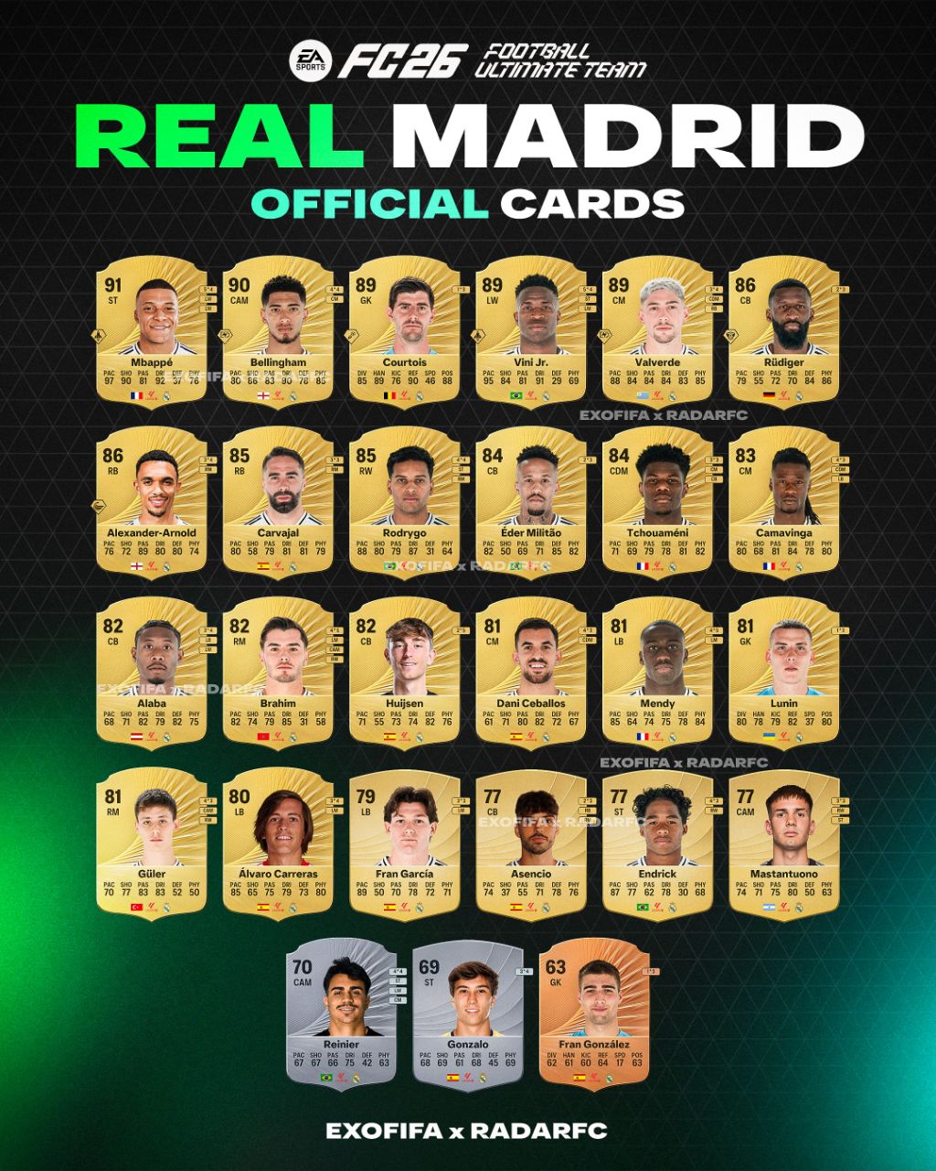 پس از کیلیان امباپه با اورال 91، جود بلینگام قرار دارد که کارت جذابی با اورال 90 دریافت کرده است. پس از او نیز وینیسیوس جونیور، تیبو کورتوا و فدریکو والورده با اورال 89 در جایگاه بعدی قرار گرفتهاند.