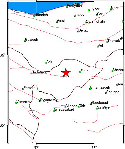 موقعیت رومرکز زلزله: 35.75 شمالی و 52.51 شرقی عمق: 8 کیلومتر عدم قطعیت مکانی: 0.87+/- کیلومتر در جهت شمالی - جنوبی 1.11+/- کیلومتر در جهت شرقی - غربی منطقه:استان تهران