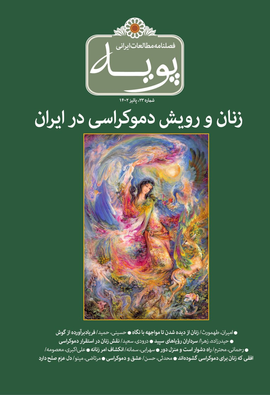 گروه اندیشه: فصلنامه مطالعات ایرانی پویه، شماره 23، پائیز 1402 با عنوان زنان و رویش دموکراسی در ایران به زودی منتشر میشود. در این شماره برخی مطالب چون دل عزم صلح دارد از مینو مرتاضی، انکشاف امر زنانه از سمانه سهرابی، سرداران رؤیاهای سپید از زهرا حیدرزاده، راه دشوار است و منزل دور از محترم رحمانی، افقی که زنان برای دموکراسی گشودهاند از معصومه علی اکبری، نقش زنان در استقرار دموکراسی از سعید درودی، فریادبرآورده از گوش از حمید حسینی، زنان از دیدگاه شدن تا مواجهه با نگاه از طهمورث امیران، عشق و دموکراسی از حسن محدثی منتشر شده است.