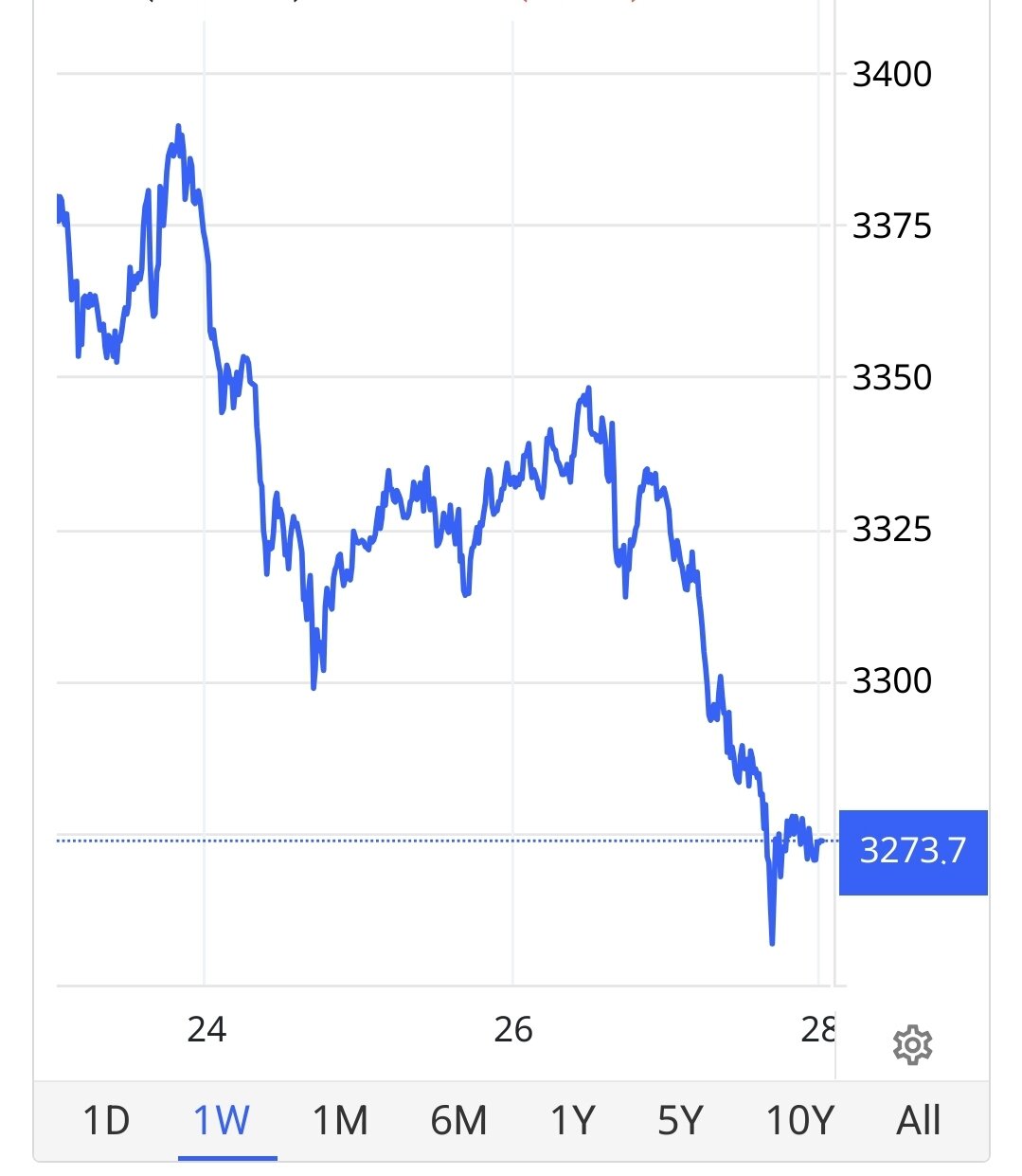 بر همین اساس، اونس طلا با کاهش 93 دلاری به 3 هزار و 273 دلار رسید که کاهش 2.7 درصدی را نشان میدهد.