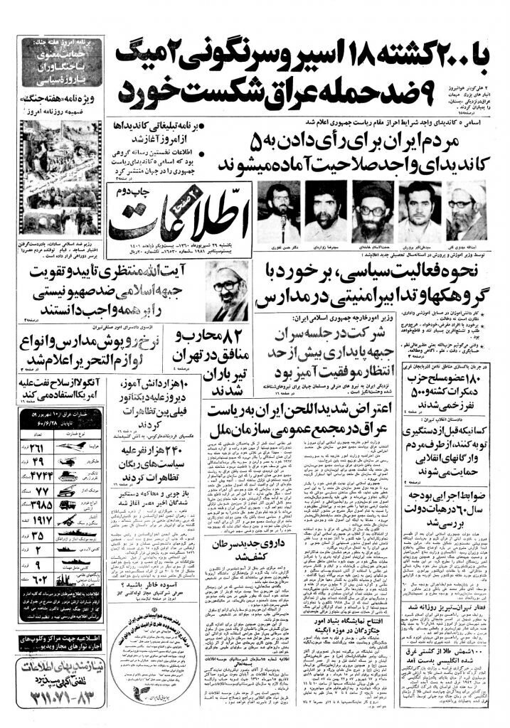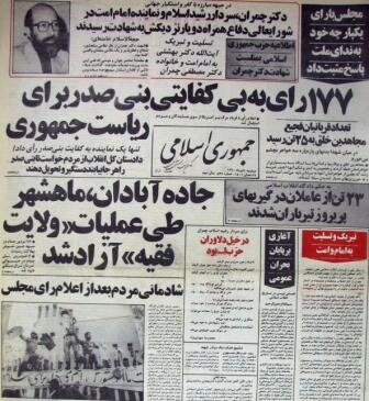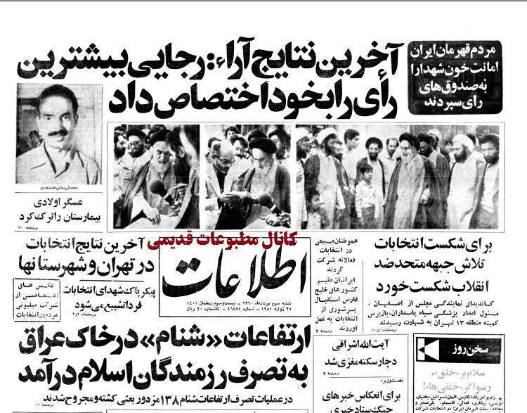 صفحه اول روزنامه بعد از برگزاری انتخابات زودهنگام ریاست جمهوری در مرداد 1360