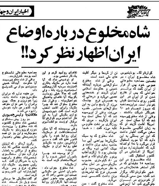 به گزارش خبرگزاری خبرآنلاین، روز پنجشنبه 24 خرداد 1358 محمدرضا پهلوی، شاه مخلوع ایران، که در «کوئرناواکا» ی مکزیک اقامت داشت در یک مصاحبهی مطبوعاتی شرکت کرد. در ادامه بخشهایی از این مصاحبه را که به زبان انگلیسی انجام میشد به نقل از اطلاعات مورخ 24 خرداد 58 میخوانید: