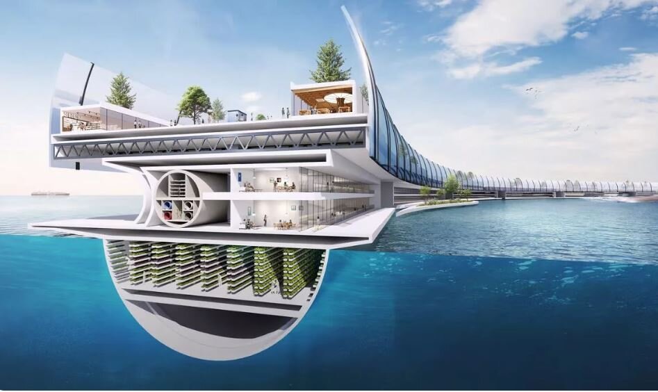 شهر شناور غولپیکر ژاپنی که سکوی پرتاب موشک دارد / مقاوم برابر سونامیهای قدرتمند / عکس