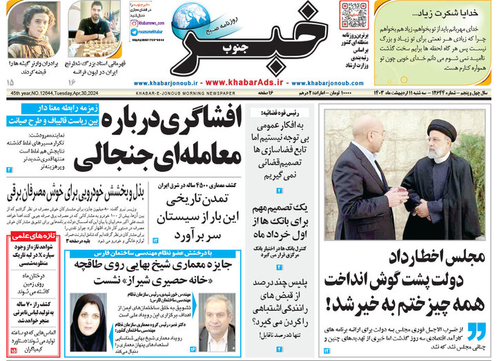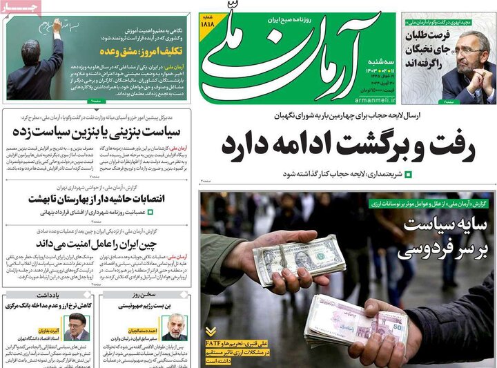 صفحه اول روزنامه های سه شنبه 11 اردیبهشت 1403